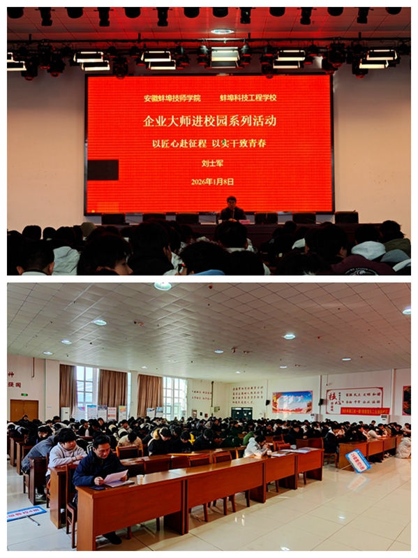 为持续深入贯彻落实学院“三全育人”工作理念,将立德树人根本任务融入教育教学各环节,近日,机械工程系隆重举办了“企业大师进校园”主题活动。本次活动特邀蚌埠金威滤清器有限公司的杰出技术专家刘士军高级技师担任主讲,为全系师生带来了一场关于技能学习、职业成长与人生规划的精彩讲座。通过引入行业顶尖人才的成功经验与人生智慧,系部拓宽了学生视野,激发了学习热情,强化了职业认同,是机械工程系将“三全育人”机制做实做强的重要举措。