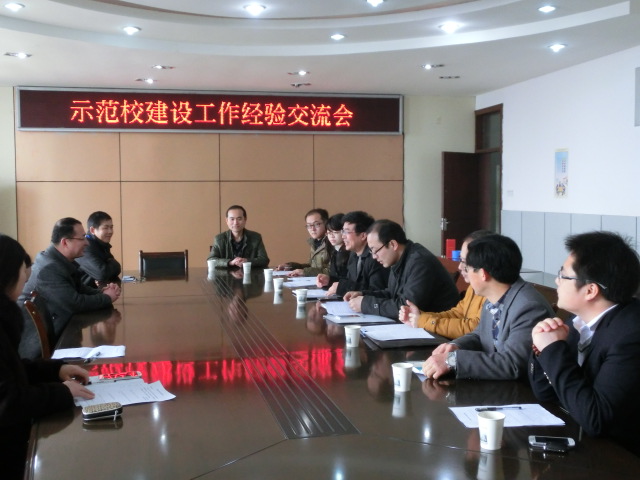 为推进第三批国家中等职业教育改革发展示范校建设,我校先后五次邀请省内外多所第三批创建示范校的专家和老师们到校交流经验。近日,同城兄弟院校--安徽电子工程学校国示范创建办工作人员、重点专业项目负责人和参与示范校建设企业专家代表等应邀来到我校 出席示范校建设经验交流会。本次会议由副校长宋晓宾主持。