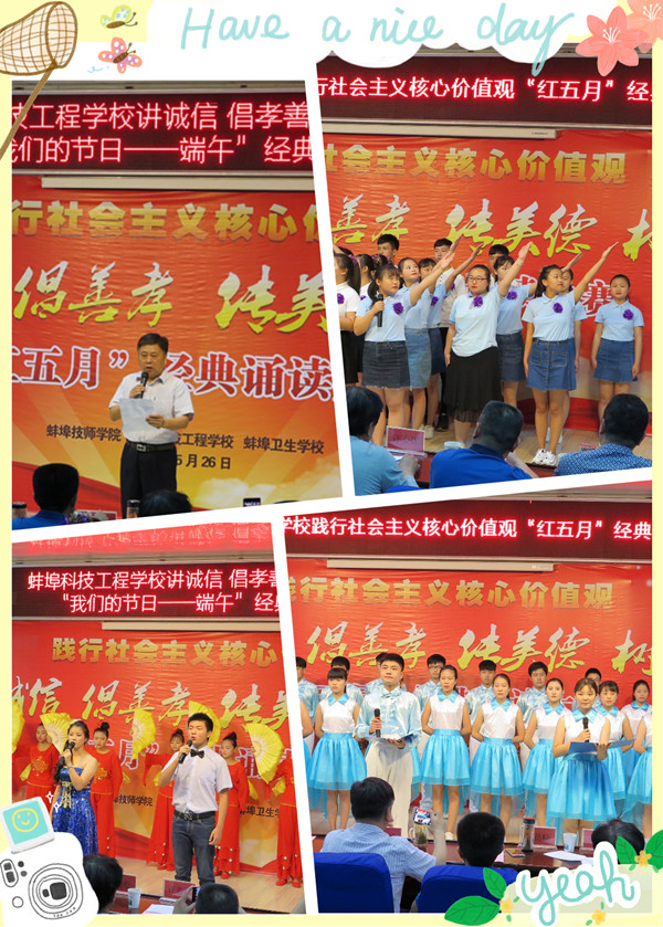 我校德育主题教育活动的重要组成部分——红五月活动5月26日再度隆重上演。本次活动的主题是“践行社会主义核心价值观讲诚信倡善孝传美德树新风”,活动结合“我们的节日——端午”活动,溶入了传统文化、文明规范、诚信美德内容。