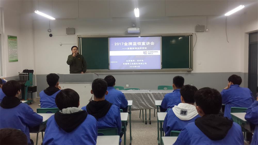 2018年3月15日下午3:45分,在安徽蚌埠技师学院 蚌埠科技工程学校实训北楼202室和205室,我校分别举办了金牌蓝领人才培养签约企业安徽柳工集团、中航三鑫太阳能光电玻璃有限公司与我校部分专业定向培养学生的两场对接会,共有31名学生参加了此次会议。