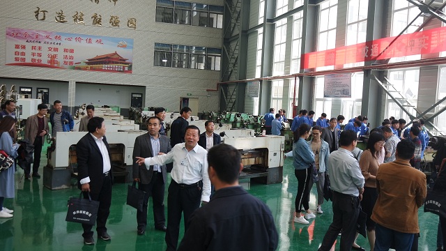 (陈元高校长陪同参观团观摩机械加工操作技术)