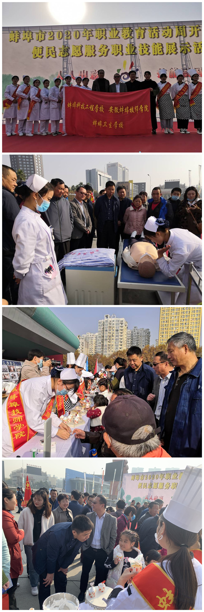 11月8日上午九点,蚌埠市2020年职业教育活动周开幕式暨便民志愿服务职业技能展示活动在蚌埠淮河文化广场举行。本届职业教育活动周主题是“人人出彩 技能强国”。