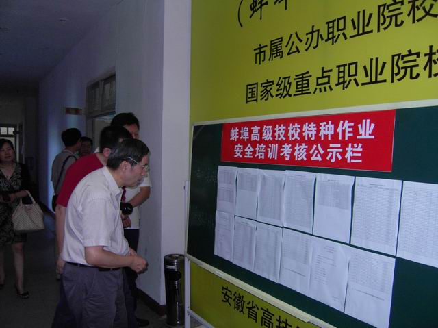 我校是安徽省安全生产监督管理局批准的安全培训机构,2012年8月24日,省、市安全生产监督管理部门四名领导组成的评估组莅临我校,对我校安全培训机构资质进行复评。