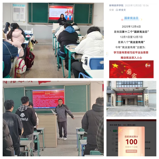 12月4日至8日,在第十二个国家宪法日来临之际,学院保卫处牵头启动 “宪法学习周” 系列教育活动,以分层施教、阵地联动模式推动宪法精神融入技工教育全过程,实现师生普法全覆盖。