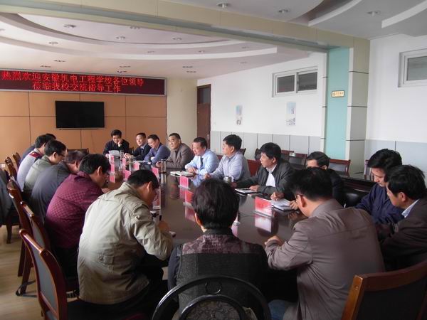 4月12日上午,安徽机电工程学校校长王其昌、副校长李仕飞率教务科、学生科和系部负责人一行到蚌埠职教中心(蚌埠技师学院)考察,陈元高校长、郝登峰书记等领导陪同。双方领导就教学管理、学生管理、技能大赛、招生等工作,进行对口交流和深入探讨。