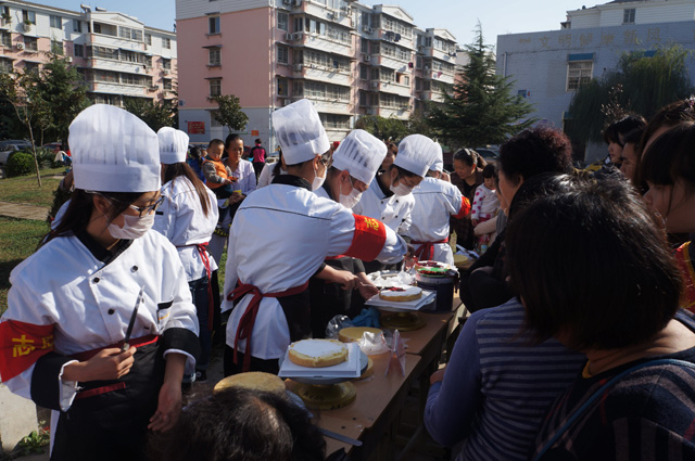 在活动中,校长陈元高向广大市民介绍了我校的办学情况,广大师生向社区居民展示了蛋糕制作与裱花,为市民测量血压、解答健康有关知识等技能。我校展台一摆开,就被广大社区居民围了起来,测量血压排起了长队,直到活动结束,还有市民前来要求为其测量血压;蛋糕制作展台更是被围了个水泄不通,有的居民还与学生一道动手制作,活动临近结束,学生将制作好的蛋糕分发给现场的社区居民品尝,为整个活动增添了喜庆气氛,大家品尝后纷纷夸奖学生技能的精湛。我校学生志愿者还向广大社区居民散发了学校的宣传画册、向市民介绍我校的教育教学情况,让广大市民充分了解蚌埠市的职业教育发展。(招就办供稿)