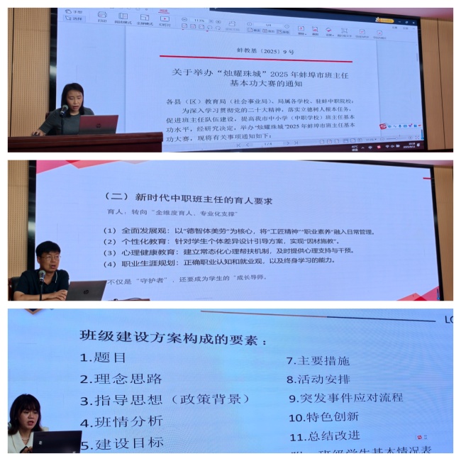 为提升中职班主任专业素养,推动班主任队伍建设,2025 - 2026 学年蚌埠市教科所精心组织了中职班主任比赛经验交流暨比赛动员部署会。我校高度重视此次班主任教研活动,由名班主任工作室牵头,各系部选派了共15 名青年班主任参会,积极汲取经验,为后续参赛及班级管理工作蓄势赋能。