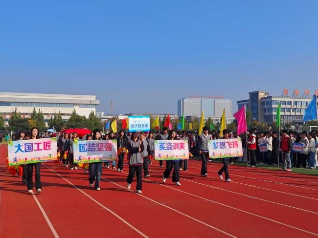 金秋送爽,丹桂飘香。2025年11月5日,蚌埠技师学院运动会在全校师生的期待中盛大开幕,经贸系学子在赛场上奋勇争先,用汗水诠释拼搏精神,以协作凝聚团队力量;老师们以赛场为“练兵场”,将体育精神融入育人实践,在服务保障中锤炼优良作风,让运动会成为涵养品德、凝聚合力的生动课堂。