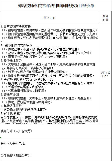 1.1 采购项目名称:蚌埠技师学院常年法律顾问服务项目
