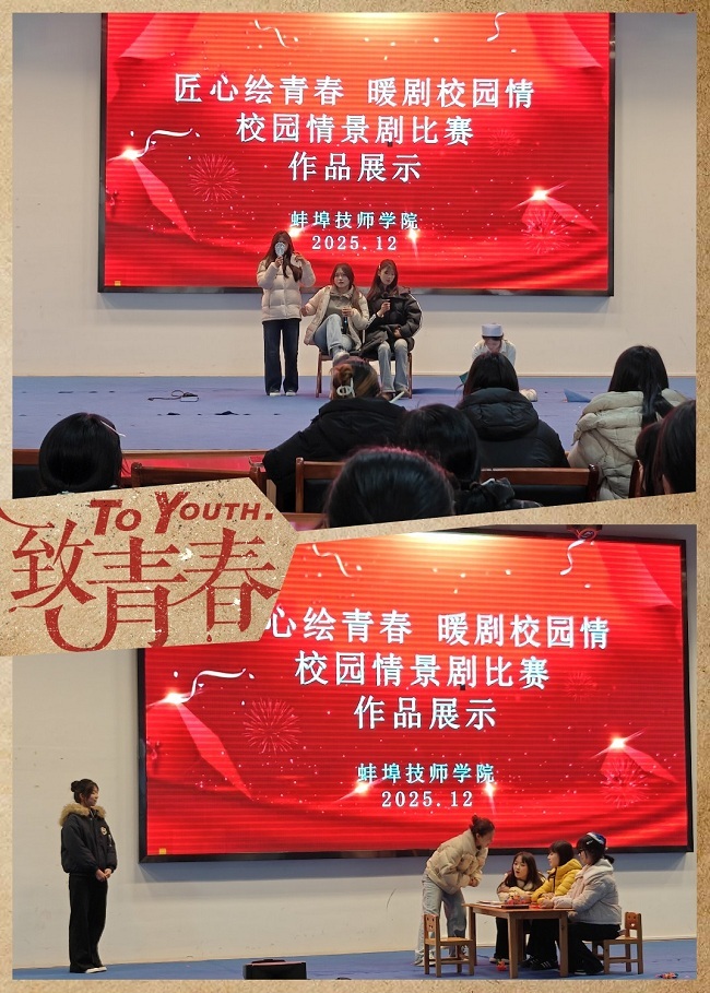 匠心筑梦,情景剧绘校园百态;青春扬帆,小品剧暖师生真情。12月18日,正能量小品、情景剧比赛精彩上演,8-10分钟的表演中融入专业技能元素,传递乐观进取、团结协作的价值观,用舞台艺术温暖校园,展现技师学子的青春担当。