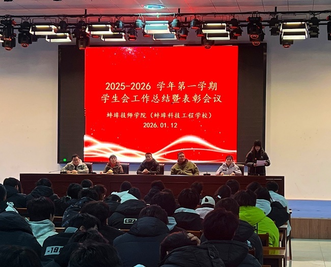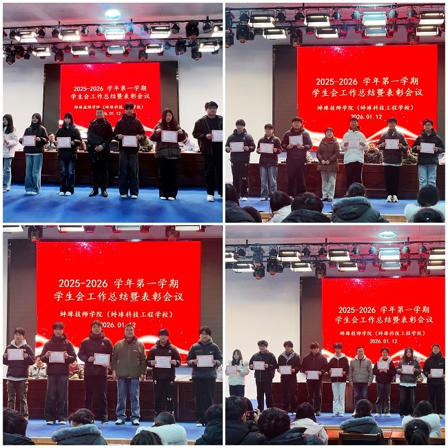 1月12日,2025-2026学年第一学期学生会工作总结暨表彰大会在学校多功能报告厅如期举行。学生处处长李恪,学生处副处长房慧萍、徐何刚、余翔,校团委教师陈琪曼及学生会全体成员齐聚一堂,共同完成本学期学生会工作复盘与先进表彰。