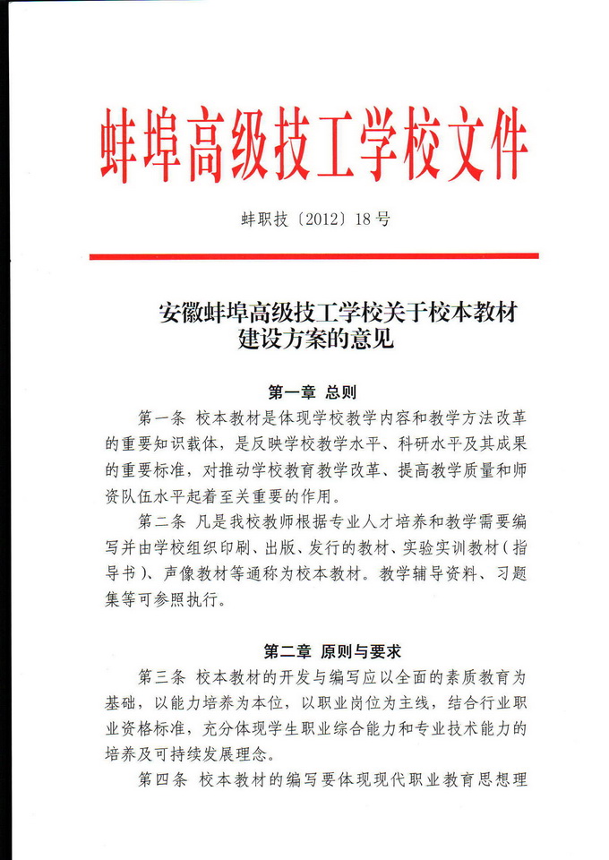 安徽蚌埠高级技工学校关于校本教材建设方案的意见