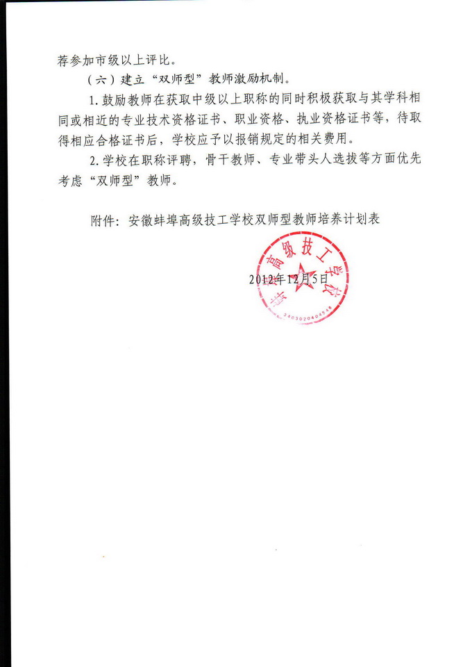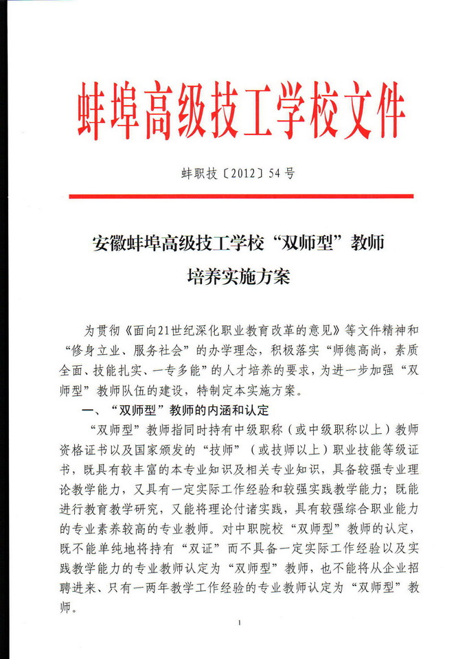 安徽蚌埠高级技工学校双师型教师培养实施方案