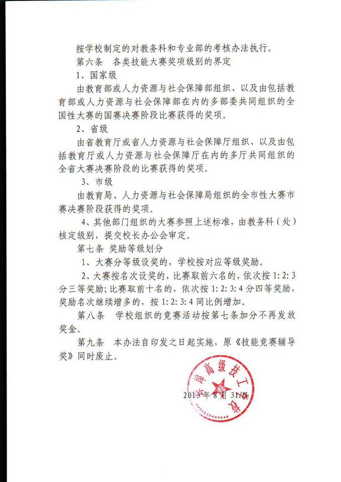 安徽蚌埠高级技工学校技能竞赛奖励办法
