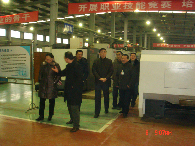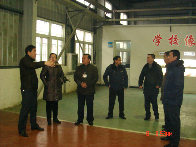 2014年1月8日上午,小雨连绵,市教育局副局长李凯、职成教科科长崔云等领导不顾严寒,莅临我校视察指导产教融合工作。